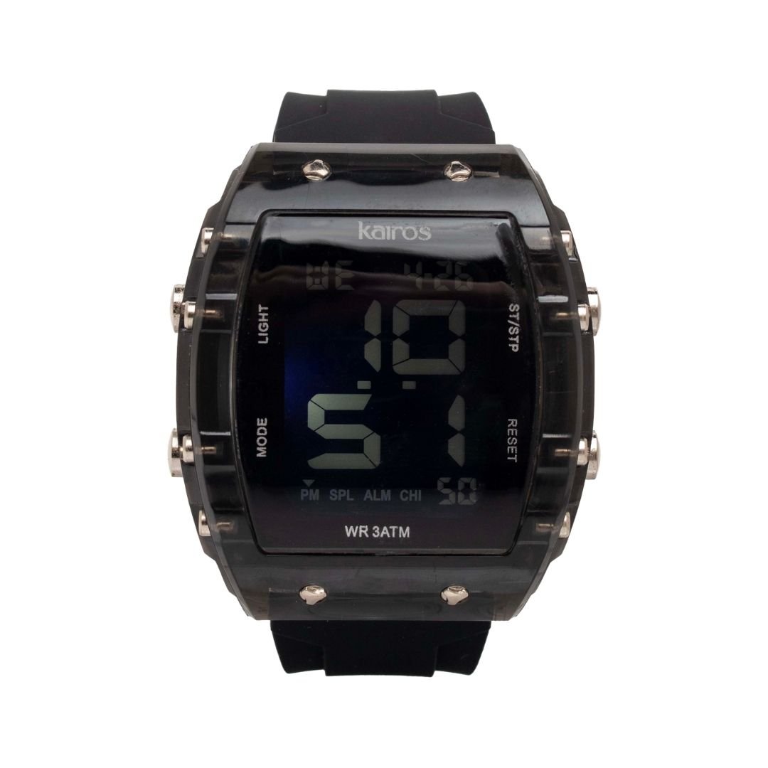 Reloj Kairos digital de plástico ligero y resistente, con correa cómoda para uso diario y actividades deportivas.