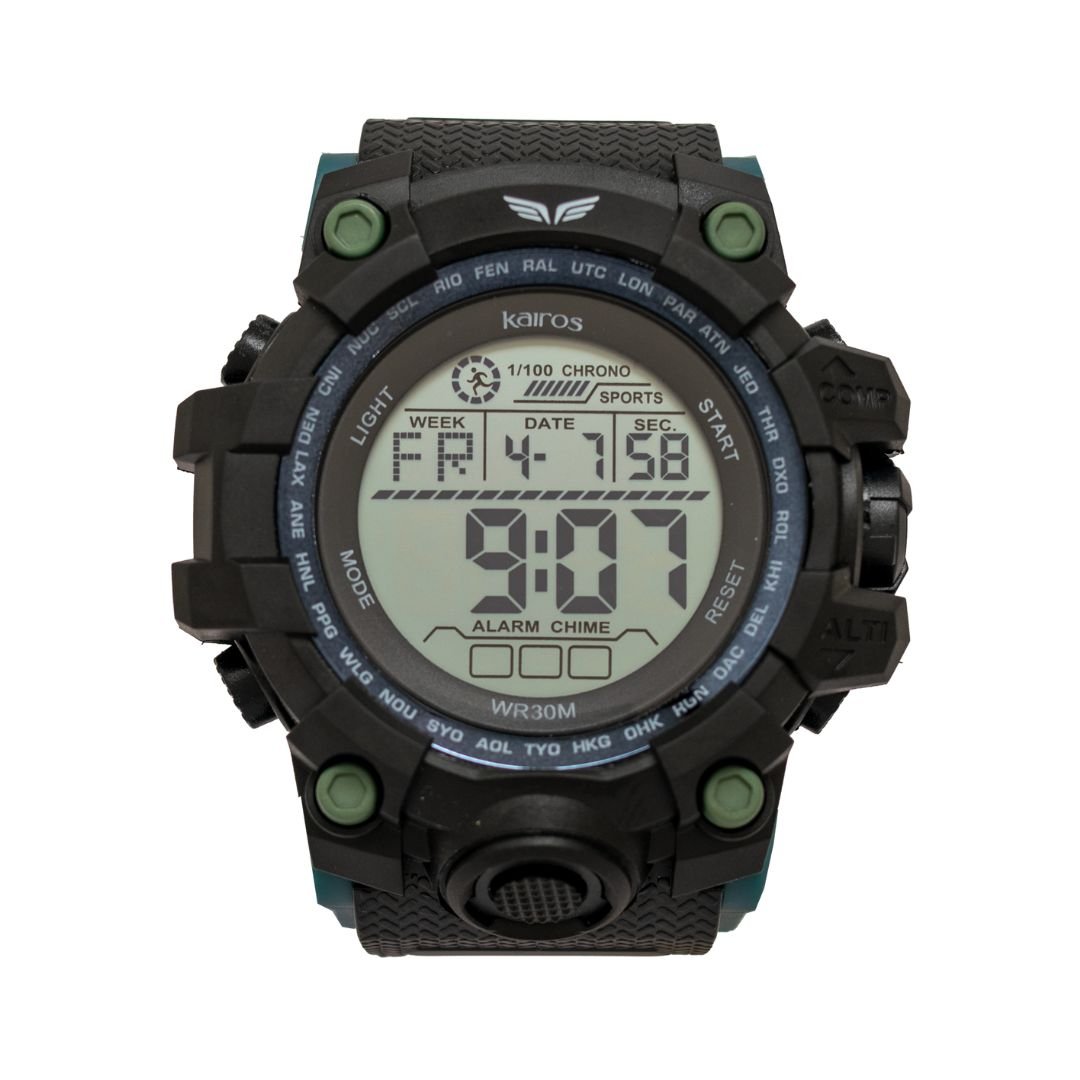 El Reloj Deportivo Kairos está diseñado para acompañarte en cada momento con un estilo moderno y resistente, incorporando funciones clave como cronómetro de alta precisión, alarma, luz nocturna, indicador de fecha y día, y resistencia al agua, convirtiéndolo en el accesorio perfecto para quienes buscan rendimiento, durabilidad y comodidad en su día a día.