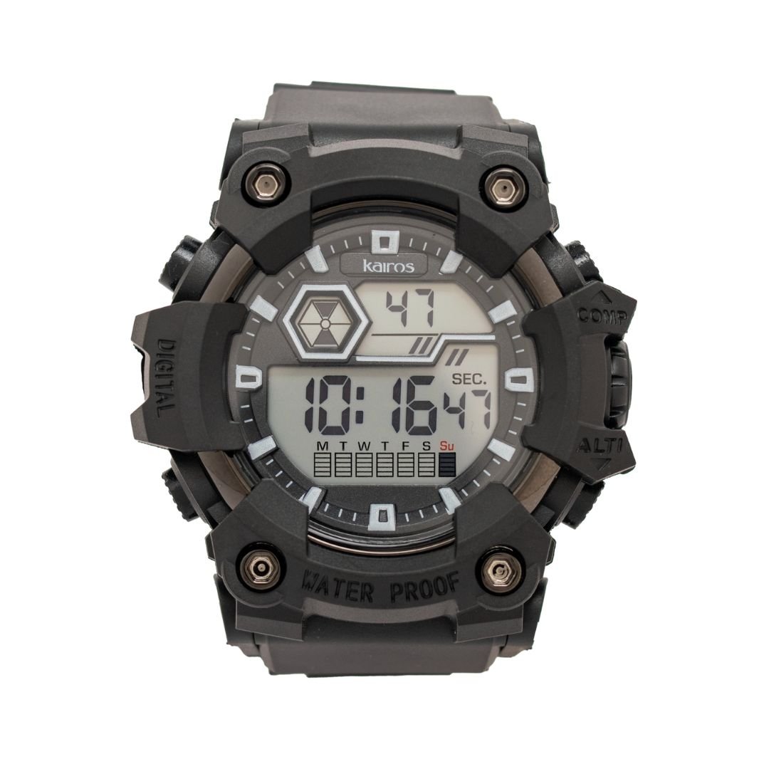 El Reloj Deportivo Kairos está diseñado para acompañarte en cada momento con un estilo moderno y resistente, incorporando funciones clave como cronómetro de alta precisión, alarma, luz nocturna, indicador de fecha y día, y resistencia al agua, convirtiéndolo en el accesorio perfecto para quienes buscan rendimiento, durabilidad y comodidad en su día a día.
