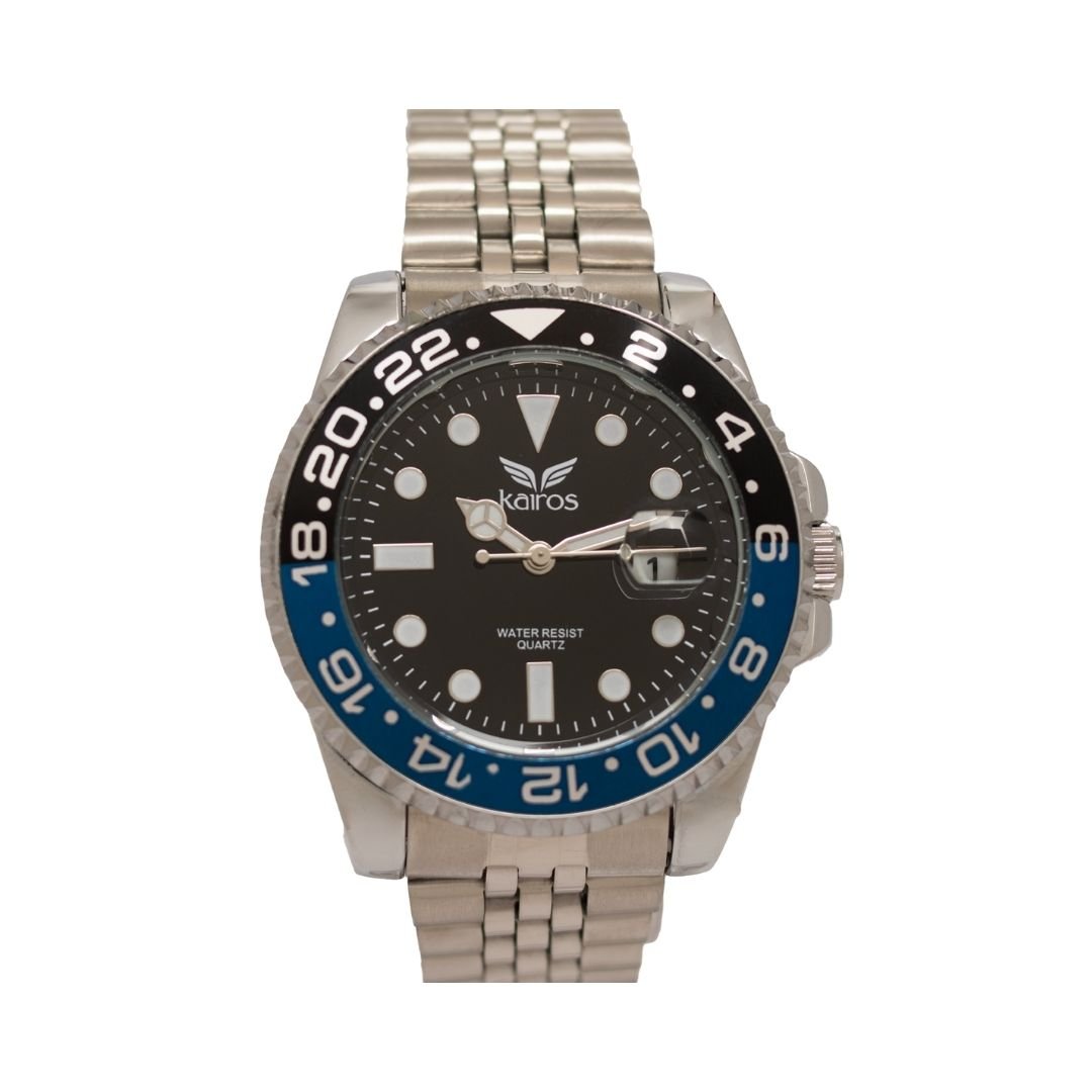 Reloj de acero inoxidable en acabado plateado, con diseño elegante y brillante. Incorpora hora puntera y calendario integrado. Ofrece resistencia al agua de 3 ATM, apto para salpicaduras pero no sumergible, y cuenta con un brazalete de color plateado, perfecto para uso diario o formal.