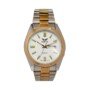 Reloj analógico de diseño elegante, con punteros clásicos y calendario integrado, ideal para un uso práctico diario. Ofrece resistencia al agua de 3 ATM, adecuada para salpicaduras. Su caja plateada y con detalles dorados y pulso en tonos plateado y dorado le dan un estilo sofisticado y versátil.