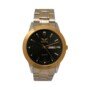 Reloj de acero inoxidable en acabado plateado, con diseño elegante y brillante. Incorpora hora puntera y calendario integrado. Ofrece resistencia al agua de 3 ATM, apto para salpicaduras pero no sumergible, y cuenta con un brazalete de color plateado y dorado ajustable y cómodo, perfecto para uso diario o formal.