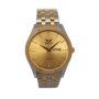 Reloj de acero inoxidable en acabado plateado, con diseño elegante y brillante. Incorpora hora puntera y calendario integrado. Ofrece resistencia al agua de 3 ATM, apto para salpicaduras pero no sumergible, y cuenta con un brazalete de color plateado y dorado ajustable y cómodo, perfecto para uso diario o formal.