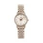 Reloj analógico de diseño elegante, con punteros clásicos. Cuenta con resistencia al agua de 3 ATM, ideal para soportar salpicaduras. Presenta caja plateada y pulso en tonos plateado, perfecto para un estilo sofisticado y versátil para el uso diario
