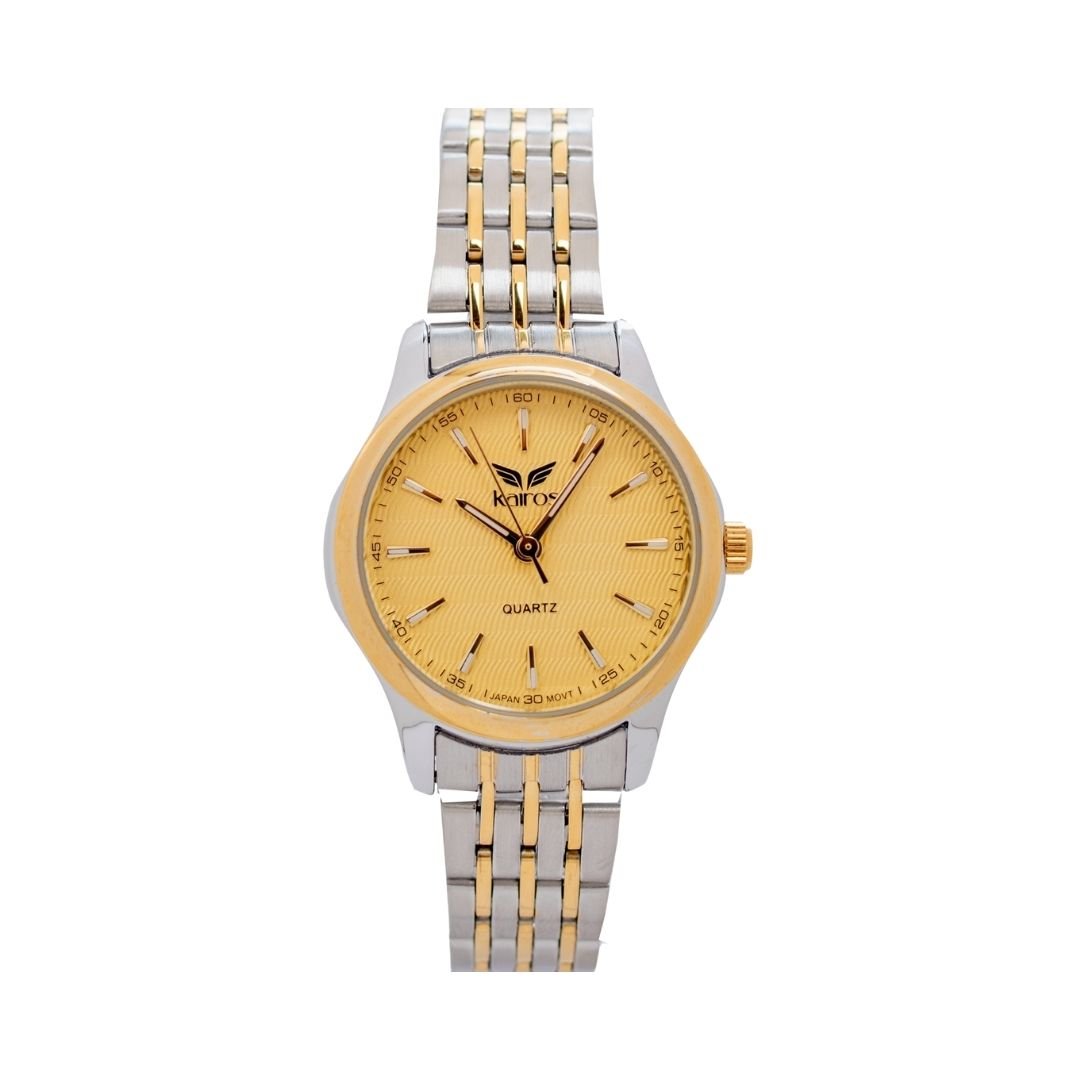 Reloj analógico de diseño elegante, con punteros clásicos y acabado bicolor. Cuenta con resistencia al agua de 3 ATM, ideal para soportar salpicaduras. Presenta caja plateada con detalles dorados y pulso en tonos plateado y dorado, perfecto para un estilo sofisticado y versátil para el uso diario