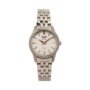 Reloj analógico de diseño elegante, con punteros clásicos . Cuenta con resistencia al agua de 3 ATM, ideal para soportar salpicaduras. Presenta caja plateada y pulso en tonos plateado, perfecto para un estilo sofisticado y versátil para el uso diario
