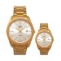 Hermoso par de relojes para pareja, diseñados para quienes desean compartir estilo y elegancia. Ambos relojes están fabricados en acero inoxidable color dorado, cuentan con hora análoga y calendario sencillo, ideales para el uso diario o para ocasiones especiales.